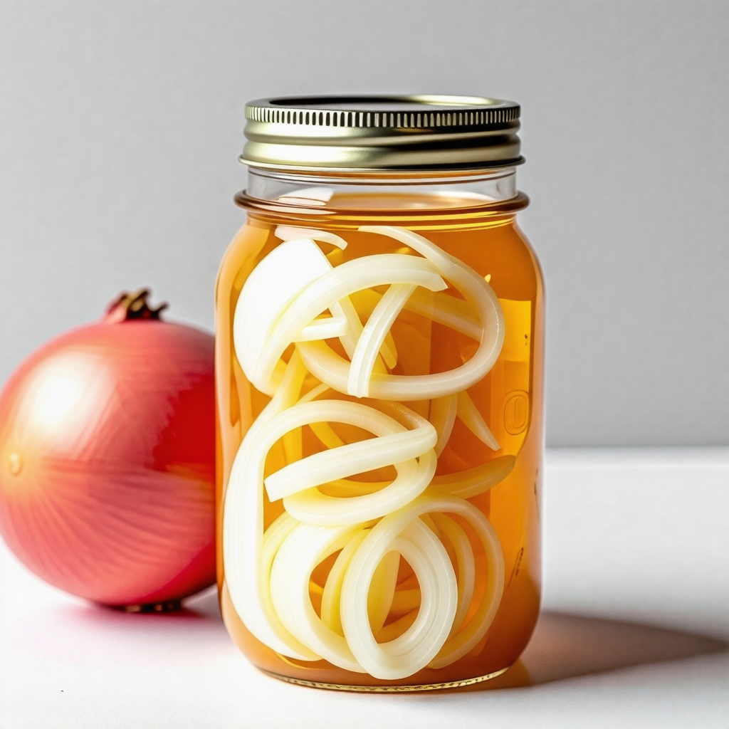 - 소독한 유리병에 슬라이스 한 양파를 넣습니다.