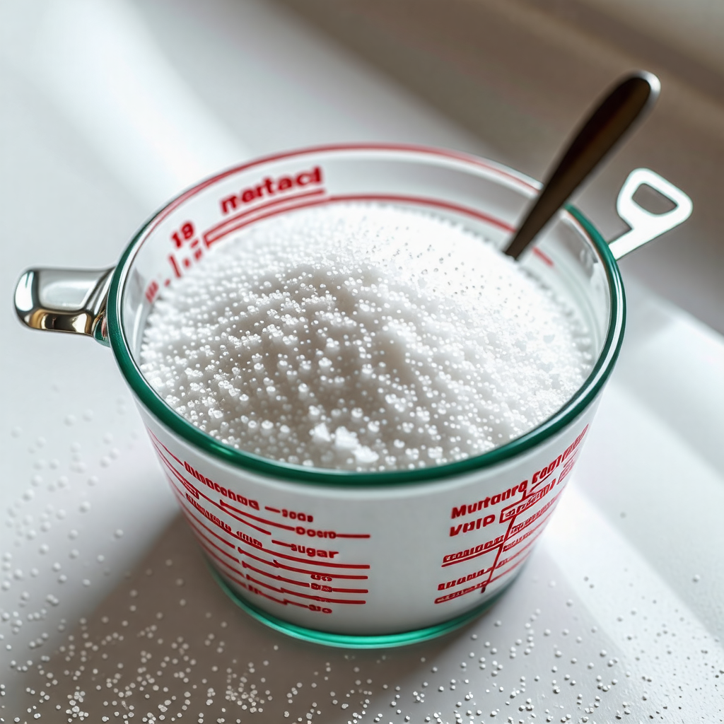 - 소금 100g을 넣어 녹인 후, 식초 500ml와 설탕 300g을 넣고 잘 섞습니다.
