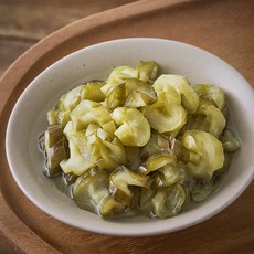 - 오이지 자르기: 발효된 오이지를 적당한 크기로 썰어줍니다. 보통 4~5cm 길이로 자르며, 먹기 좋은 크기로 써는 것이 좋습니다.