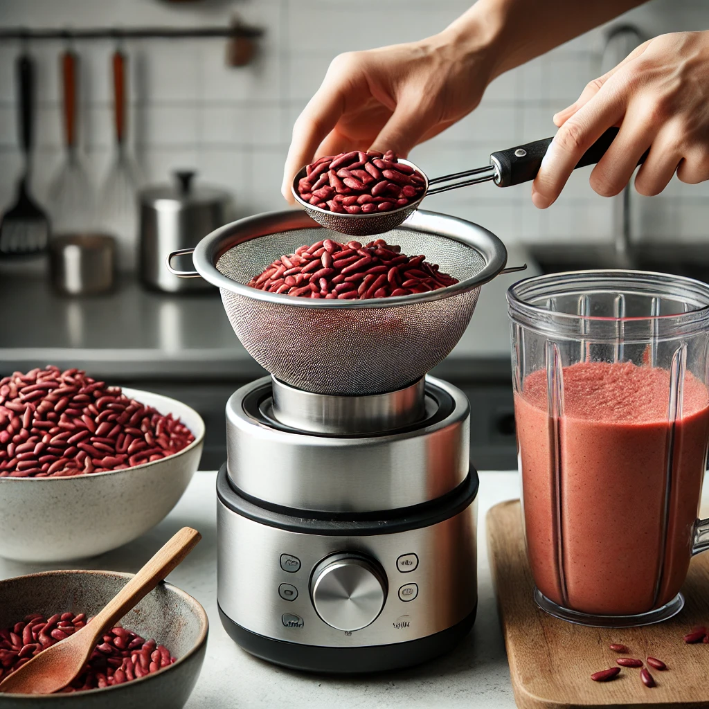 - 삶은 팥을 체에 걸러 곱게 갈거나 믹서기로 갈아주세요.