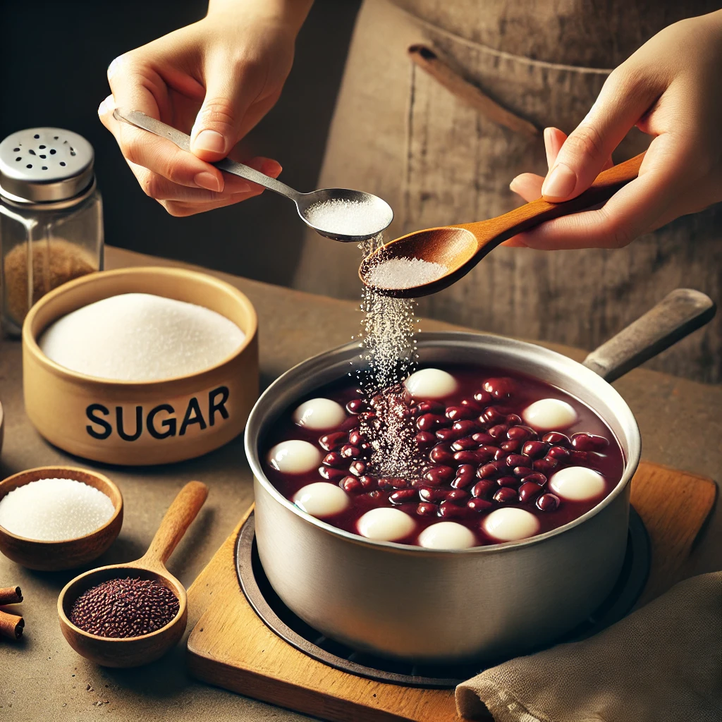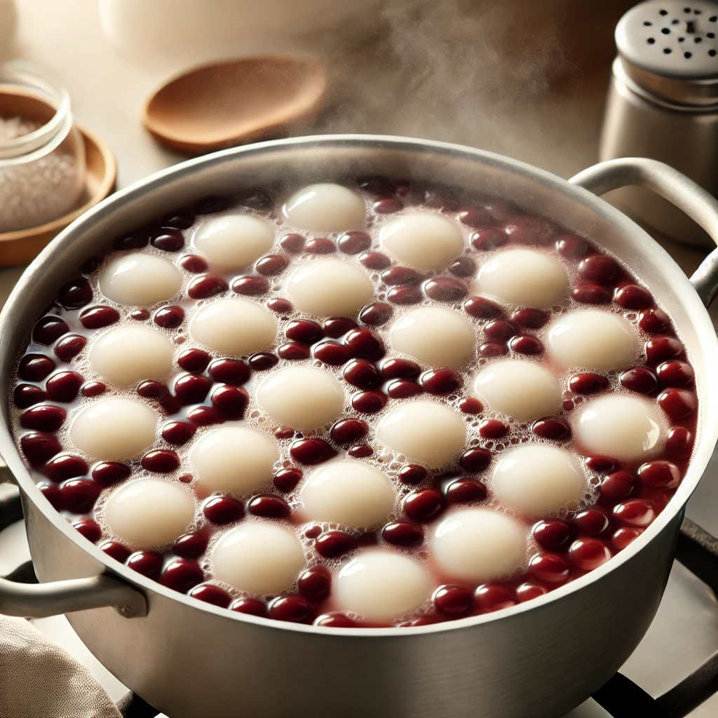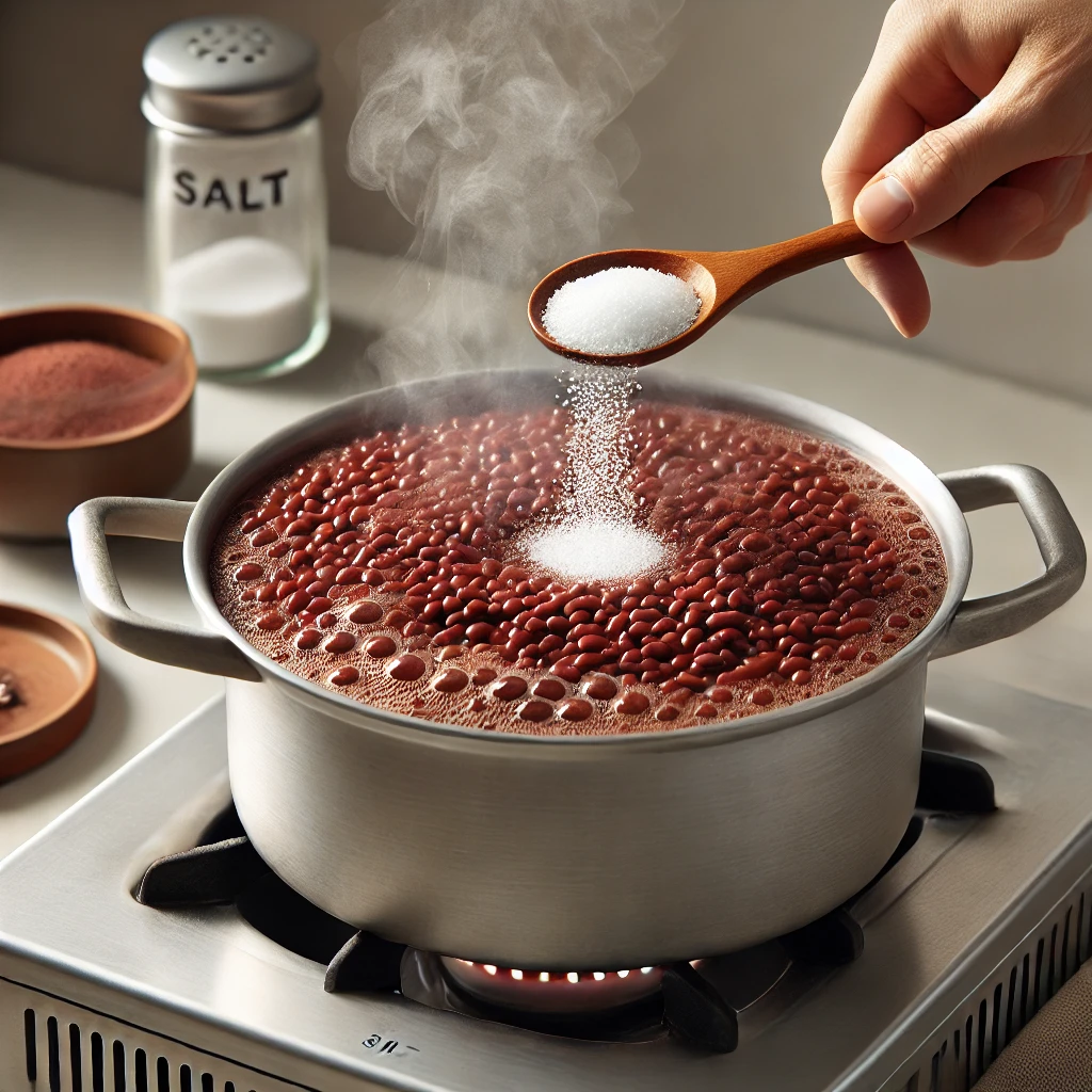 - 간 팥을 냄비에 넣고 끓인 후, 소금을 약간 넣어 간을 맞춥니다.