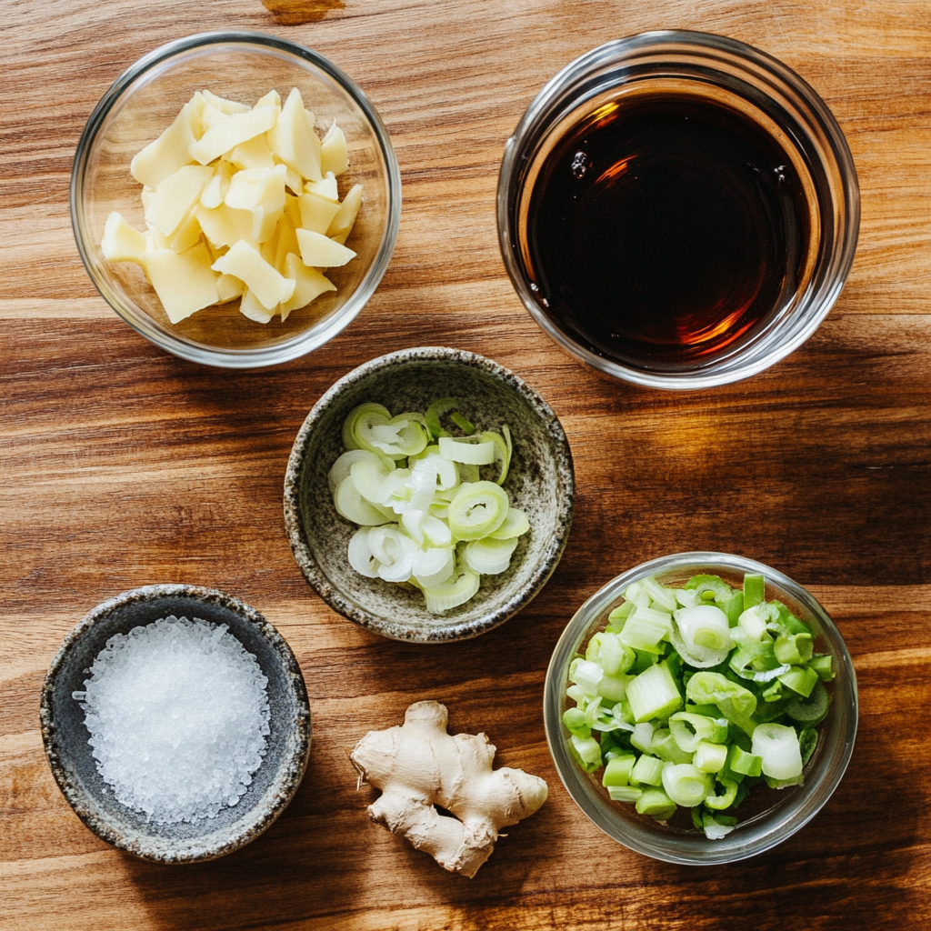 - 생강, 대파, 무, 물