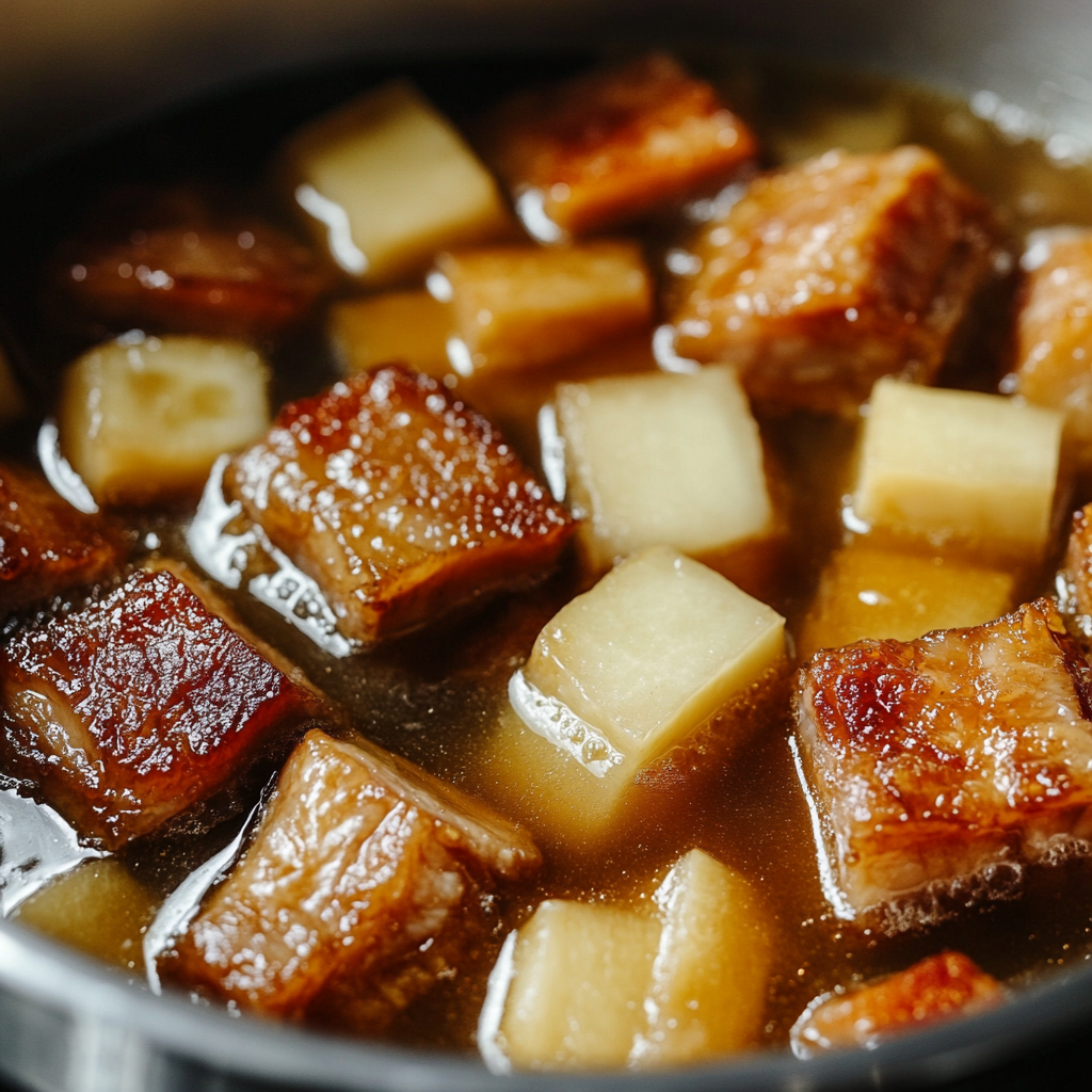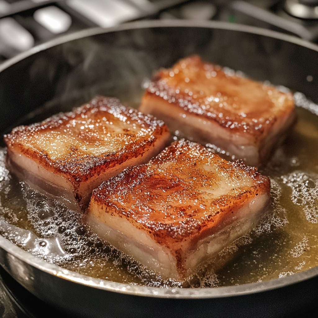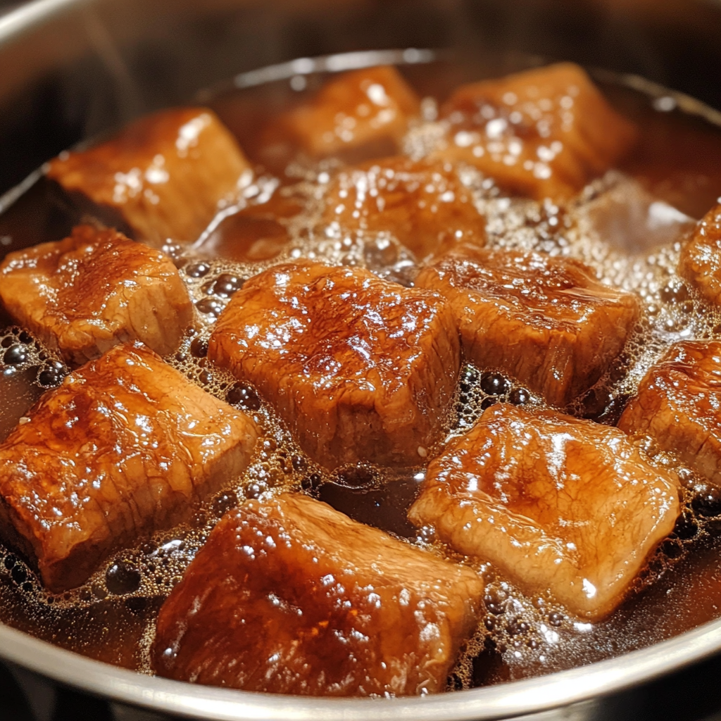 삼겹살 홍소육을 만드는 과정은 생각보다 간단해요. 천천히 끓여가며 삼겹살에 소스의 깊은 맛을 배게 하는 것이 중요해요.
