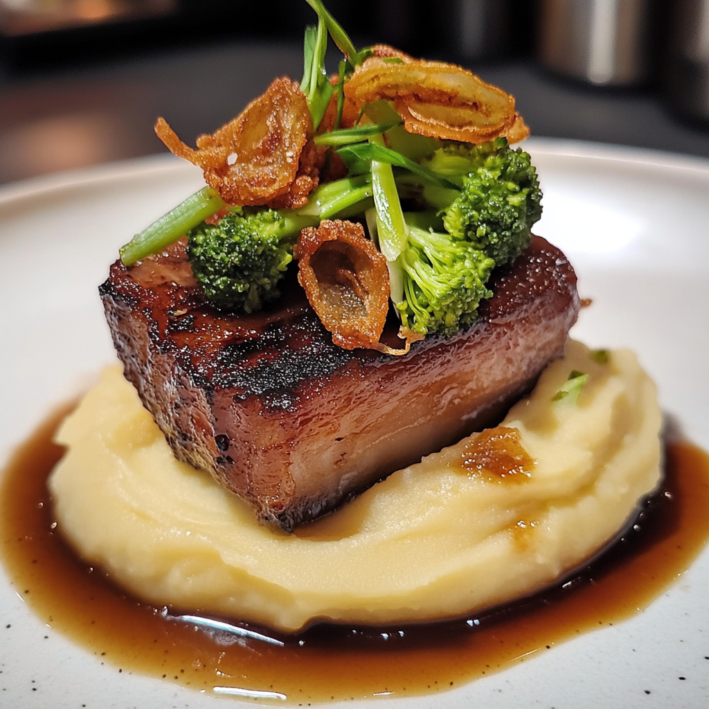 홍소육과 함께 곁들이면 좋은 매시드 포테이토를 소개합니다. 부드러운 감자 매시와 간장 소스의 조화가 일품입니다.